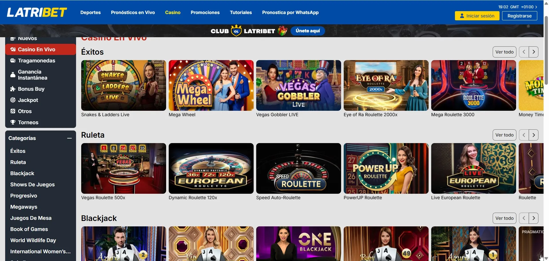 | Game Shows (Monopoly/Football/UP/Crash) | Variable | No verificado | Filtra por “Shows” en el lobby en vivo |